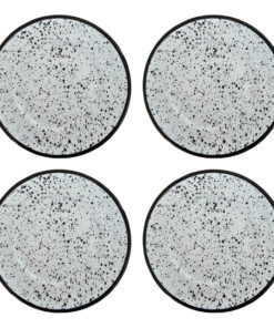 Plato Playo Redondo Metal Enlozado 22cm Salpicado Blanco X 4 Blanco Y Negro