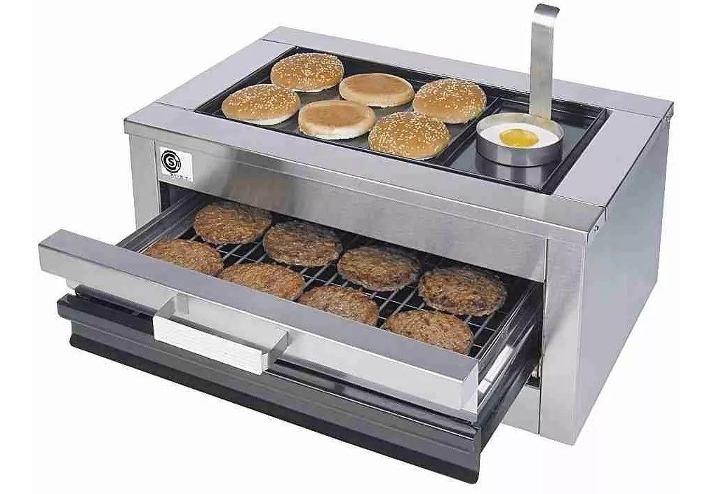 Hamburguesera eléctrica, que calienta sin llama, sin humo, ni olor.