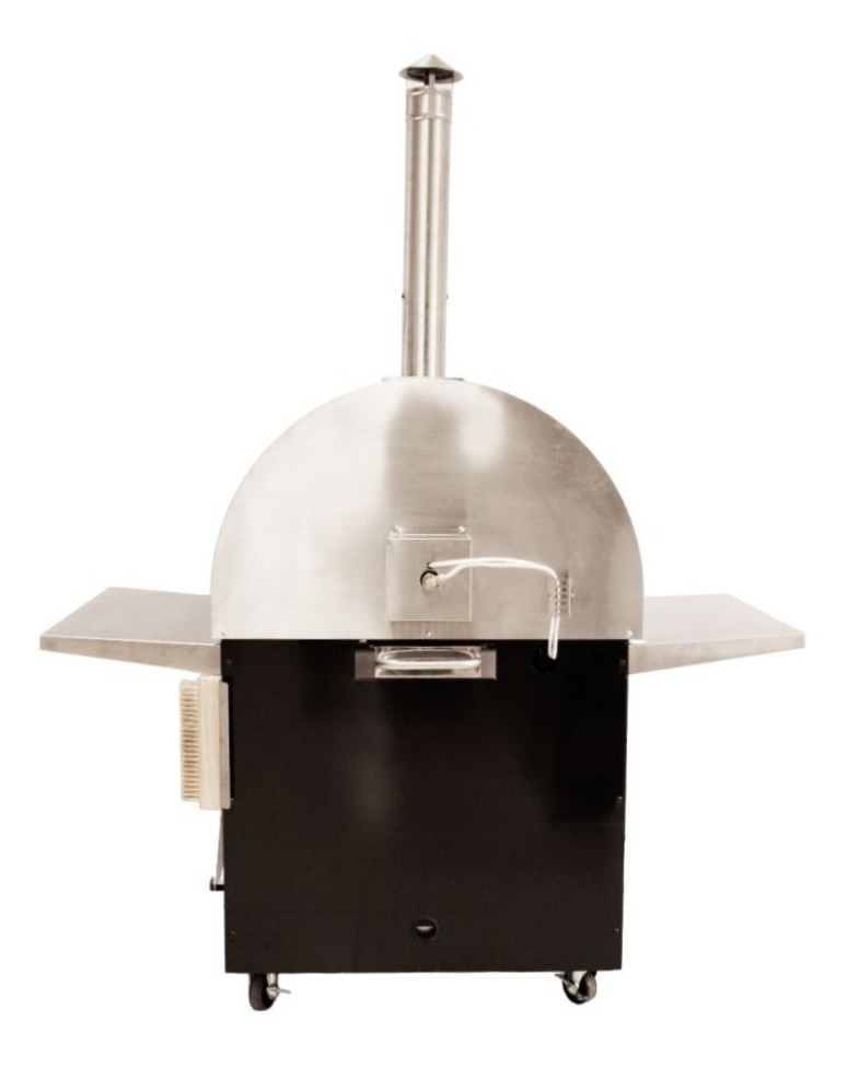 Horno de Campo Gourmet Dual de la línea BBQ Grill, diseñado para cocción a leña o gas envasado. Incluye pirómetro para controlar la temperatura de cocción. Fabricado en acero inoxidable en el exterior y piedra refractaria en el área de cocción para una mayor durabilidad. Incluye accesorios: cepillo para limpiar cenizas, pala pizzera de acero inoxidable, pala para servir y cortante rueda.