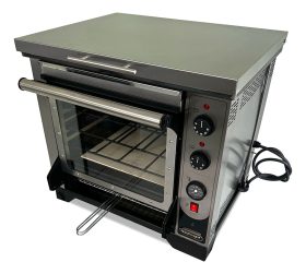 Este horno de fabricación nacional cuenta con capacidad para la producción de hamburguesas ,pizzas y tostados todo al mismo tiempo, lo que permite en un espacio reducido lograr múltiples preparaciones optimizando el tiempo y el esfuerzo en la cocina. Su fuente de alimentación eléctrica asegura un funcionamiento eficiente y seguro, sin la necesidad de gas.